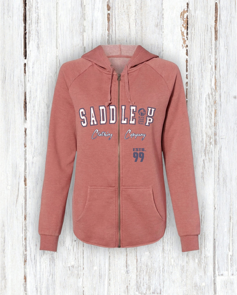 Blaze Your Own Trail isn’t just a saying—it’s the spirit woven into every Saddle Up piece. This lightweight full-zip hoodie is designed for women who move through life with purpose and passion, making it an easy, everyday layer from early mornings to cool evenings as the sun dips low.