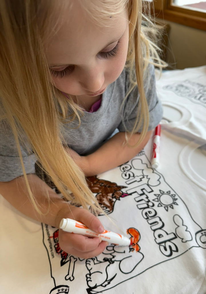 Details: White 100% cotton t-shirt, permanent outline. Washable markers and easy-care instructions included!