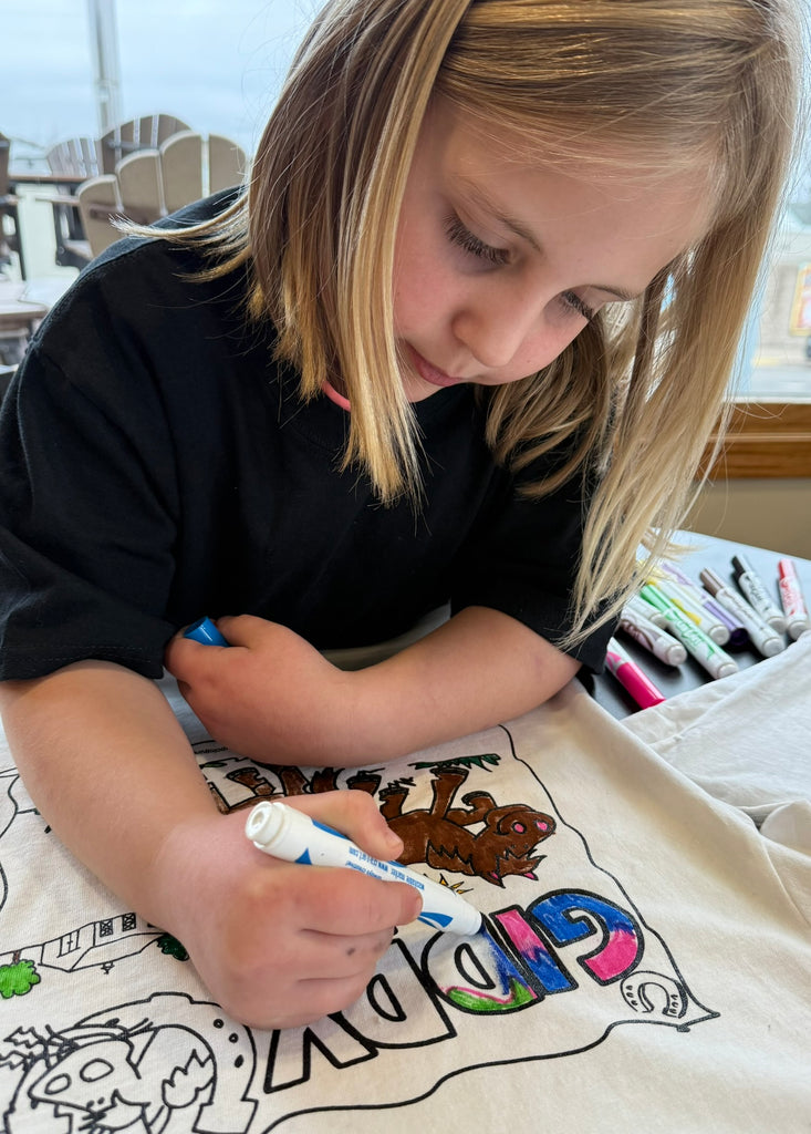 Details: White 100% cotton t-shirt, permanent outline. Washable markers and easy-care instructions included!